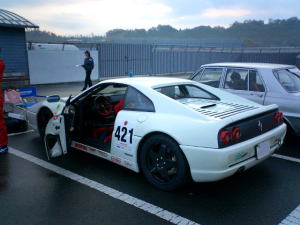 | もなかさんにエビスサーキットドリ小屋某講師さんが合流。 355で困難とされるV8クラス制覇を狙っています。 |