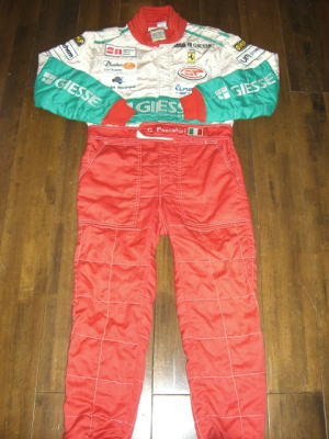 | ■OMPレーシングスーツ・CHRISTIAN PESCATORI仕様■ FIAのホモロゲートモデルです。(04 259 CSAI 99) クリスチャン・ペスカトーリがJMB RACINGに所属していた2001年。 360GTでFIA-GTに参戦していた時に実際に着用していたスーツです。 中古の為、多少汚れています。 2007/02/01 現在在庫アリ |
